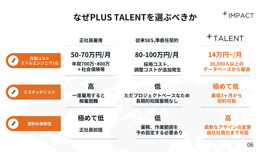 PLUS TALENT is a Employer of Record (EOR) service that connects full-time remote workers (Remote Talents) in developing countries with companies in need of expertise.
